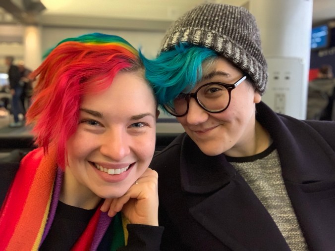 *i am hj, the rainbow-haired of this duo. i also act and do aerial arts. my personal/professional website is hjfarr.com*